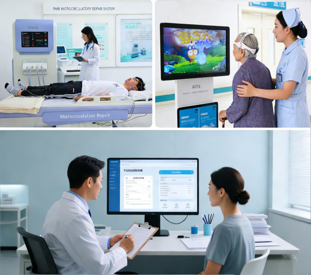 體檢中心設(shè)備升級后,可為體檢者提供多元化的非藥物干預(yù)服務(wù),精準(zhǔn)破解亞健康問題與慢性病隱患。針對由不良生活方式引發(fā)的亞健康狀態(tài),以及肥胖、血糖異常、血壓偏高、早期動脈硬化、炎癥、過敏、頭痛等常見慢性病隱患,體檢中心可通過PMR微循環(huán)修復(fù)、ADTS記憶力障礙干預(yù)、SMIS脈沖磁睡眠治療等專業(yè)手段,為體檢者定制個性化干預(yù)方案,有效改善心身亞健康狀態(tài),助力慢性疾病的緩解、控制與輔助治療。