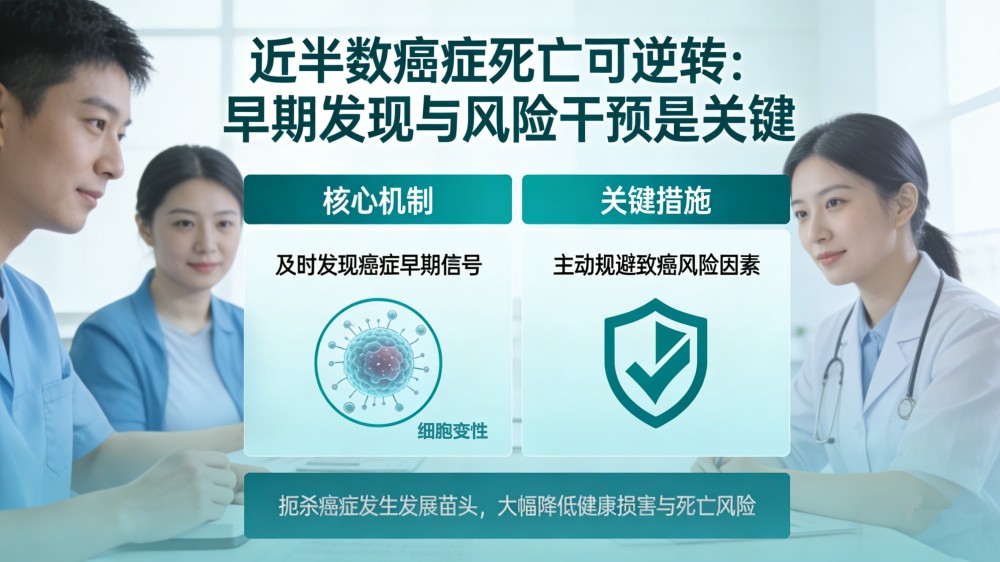 令人欣慰的是,多項(xiàng)研究證實(shí),近半數(shù)癌癥死亡是可以“逆轉(zhuǎn)”的。而“逆轉(zhuǎn)”的關(guān)鍵,就在于精準(zhǔn)把控“早期發(fā)現(xiàn)”與“風(fēng)險(xiǎn)干預(yù)”兩大核心——通過及時(shí)發(fā)現(xiàn)癌癥早期信號(hào),主動(dòng)規(guī)避致癌風(fēng)險(xiǎn)因素,就能將癌癥發(fā)生、發(fā)展的苗頭扼殺在搖籃里,大幅降低癌癥帶來的健康損害與死亡風(fēng)險(xiǎn),讓癌癥從“不治之癥”轉(zhuǎn)變?yōu)椤翱煞揽芍巍钡穆圆 ?/span>