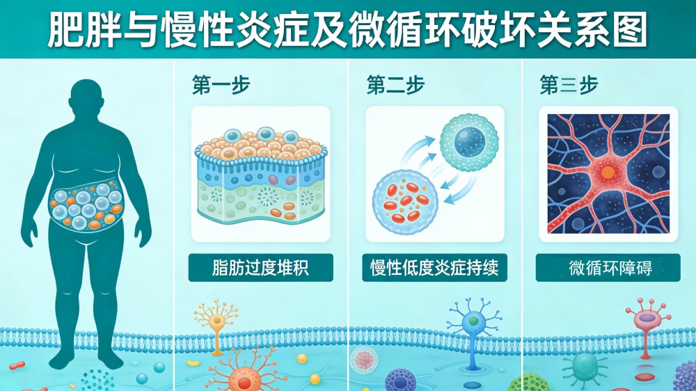 肥胖作為慢性代謝性疾病,其帶來的代謝失衡與慢性炎癥,會直接攻擊人體微循環(huán)系統(tǒng),形成“代謝紊亂—微循環(huán)受損”的惡性循環(huán),讓脂肪更難分解、代謝持續(xù)走低,健康風(fēng)險不斷疊加。