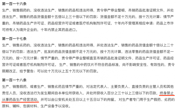 我們可以看到,對于生產(chǎn)銷售假藥的處罰是非常嚴厲的,最嚴重終生禁止從事藥品生產(chǎn)經(jīng)營活動。如果你是涉事藥店的掛證執(zhí)業(yè)藥師,剛好還是質(zhì)量負責人,剛好老板在店里賣假藥,又剛好被藥監(jiān)部門查了,那就涼涼了。