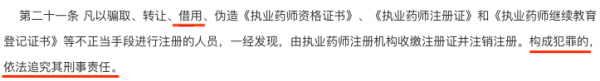 值得注意的是,關(guān)于執(zhí)業(yè)藥師掛證的處罰,《執(zhí)業(yè)藥師注冊管理暫行辦法》也有明確規(guī)定。