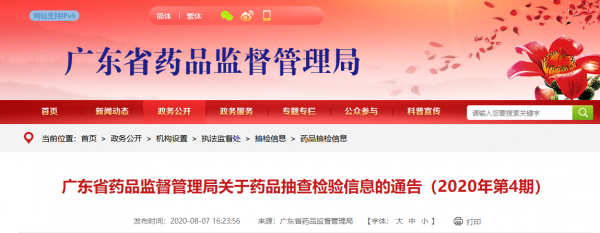 8月7日,廣東省藥監(jiān)局發(fā)布了“2020年第4期藥品抽查檢驗信息的通告”(以下簡稱“抽查通告”)。