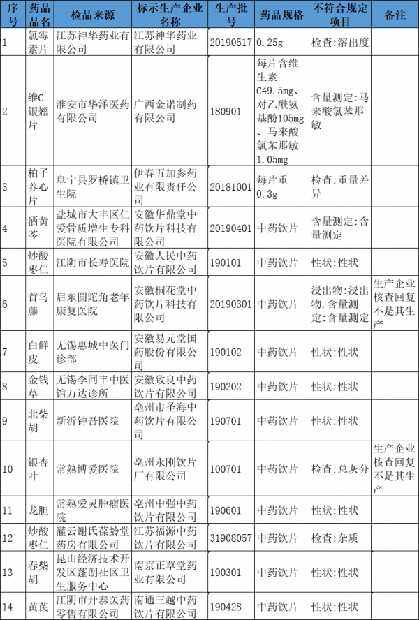 通告顯示,依據(jù)江蘇省藥品監(jiān)督管理局年度抽檢工作計劃,該局組織對藥品生產、經營、使用單位進行了抽檢。在抽檢中發(fā)現(xiàn),有14批次藥品不符合規(guī)定。