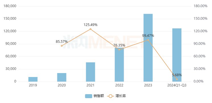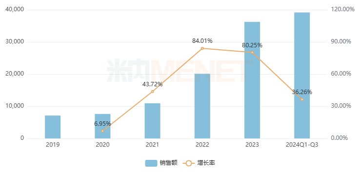 在中國網(wǎng)上藥店終端中成藥市場,太極集團的銷售額從2021年起呈現(xiàn)高速增長態(tài)勢,2024年Q1-Q3達(dá)到3.9億元,已超過2023年全年。