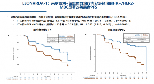 LEONARDA-1(NCT05054751)是由中國醫(yī)學(xué)科學(xué)院腫瘤醫(yī)院徐兵河教授牽頭的一項(xiàng)隨機(jī)、雙盲、III期研究,旨在評估來羅西利在中國人群既往接受內(nèi)分泌治療后疾病復(fù)發(fā)或進(jìn)展的HR+/HER2-晚期或轉(zhuǎn)移性乳腺癌患者中的療效和安全性。該研究共納入了275名中國患者,并按1:1的比例隨機(jī)分配,接受來羅西利(137名患者,150mg,每日兩次)或安慰劑(138名患者)聯(lián)合氟維司群的治療。