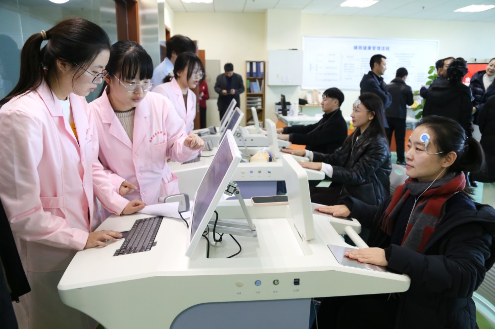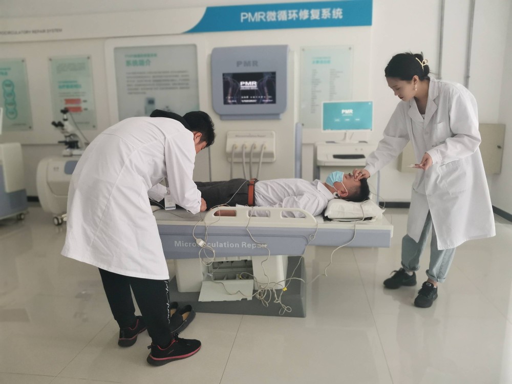 除了人體電阻抗評測分析、認知功能障礙篩查、紅細胞聚集檢測等功能醫(yī)學健康檢測設備,學生們還可以實操功能醫(yī)學健康干預設備,如脈沖磁微循環(huán)治療與睡眠治療、記憶力障礙訓練等功能醫(yī)學干預設備,開展慢性病管控、亞健康干預、失眠干預、微循環(huán)修復、內分泌調理、疲勞恢復、認知功能障礙訓練提升等實訓管理,完成“健康監(jiān)測-風險評估-干預實施-效果追蹤”的全流程訓練,在實操訓練中樹立起全面、系統(tǒng)、科學的健康管理思維。