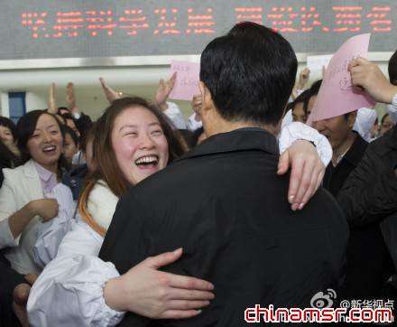 女研究員熱情擁抱胡錦濤