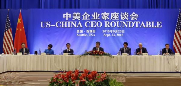中方的15家企業(yè)和美方15家企業(yè)其實(shí)有一個(gè)非常好的匹配關(guān)系或是對(duì)等關(guān)系。中方有阿里、騰訊、百度、聯(lián)想、海爾等IT和互聯(lián)網(wǎng)+的企業(yè),美方會(huì)有亞馬遜、思科、蘋果、微軟等這樣的企業(yè);中方有雙匯和伊利代表消費(fèi)和糧食類的大型企業(yè),美方有百事和星巴克這樣的大牌;在制造業(yè)領(lǐng)域,我中方有鋼管、化工,美國(guó)有杜邦、陶氏化學(xué)、霍尼韋爾、波音這樣的大企業(yè)等。這些企業(yè)在一起,它們之間不僅僅是跟隨領(lǐng)導(dǎo)人會(huì)面的問題,同時(shí)要進(jìn)行很多商業(yè)上的重大磋商,其中有可能要談一些大合作。