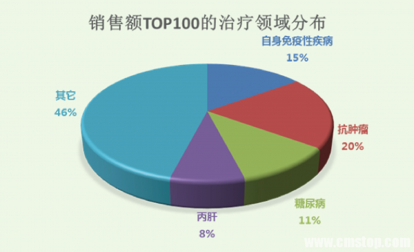 FirstWord發(fā)布2015年銷售額最高的100種藥品清單,加起來超過2650億美元。前十個就達800億美元。而前兩個產(chǎn)品單藥Harvoni和Humira銷售超過100億美元。