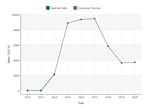 Sovaldi銷售情況及市場預測。(圖1)