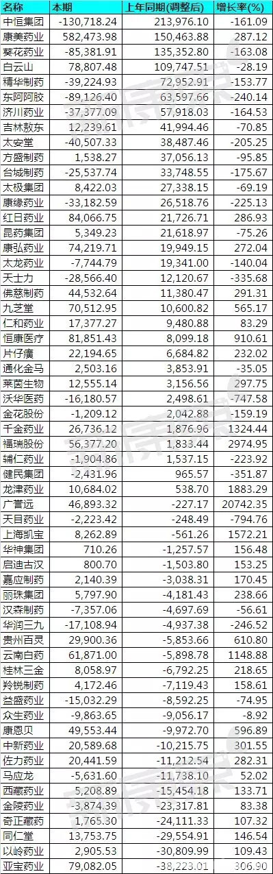 營收增速TOP10企業(yè)的增速從30%到93%不等,但是,凈利潤增速卻并未同步。這10家企業(yè)中3家企業(yè)凈利潤竟然為負增長,而太安堂、臺城制藥和片仔癀的凈利潤增速,也分別只有1.66%、1.14%和5.81%,遠低于同期營收增速。
